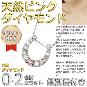 ダイヤモンド ピンクダイヤモンドペンダント/ネックレス プラチナ Pt900 13石 合計0.2ct 馬蹄型 鑑別書付き