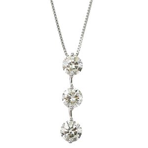ダイヤモンド ネックレス 3石 合計1ct プラチナ Pt900 縦にセットされた人気のダイヤ3ストーン ペンダント 鑑定書付き