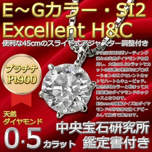ダイヤモンド ネックレス 一粒 0.5ct プラチナ Pt900 6本爪 無色透明 E 〜 Gカラー SI2クラス Excellent H&C エクセレント ハート&キューピッド 0.5カラット ダイヤネックレス ペンダント 中央宝石研究所 CGL 鑑定書付き