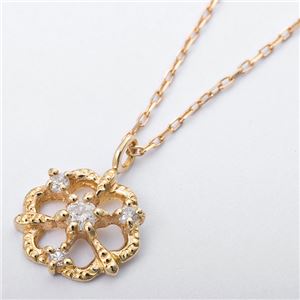 K10イエローゴールド 天然ダイヤモンドペンダント/ネックレス ダイヤ0.05ct アンティーク調フラワーモチーフ